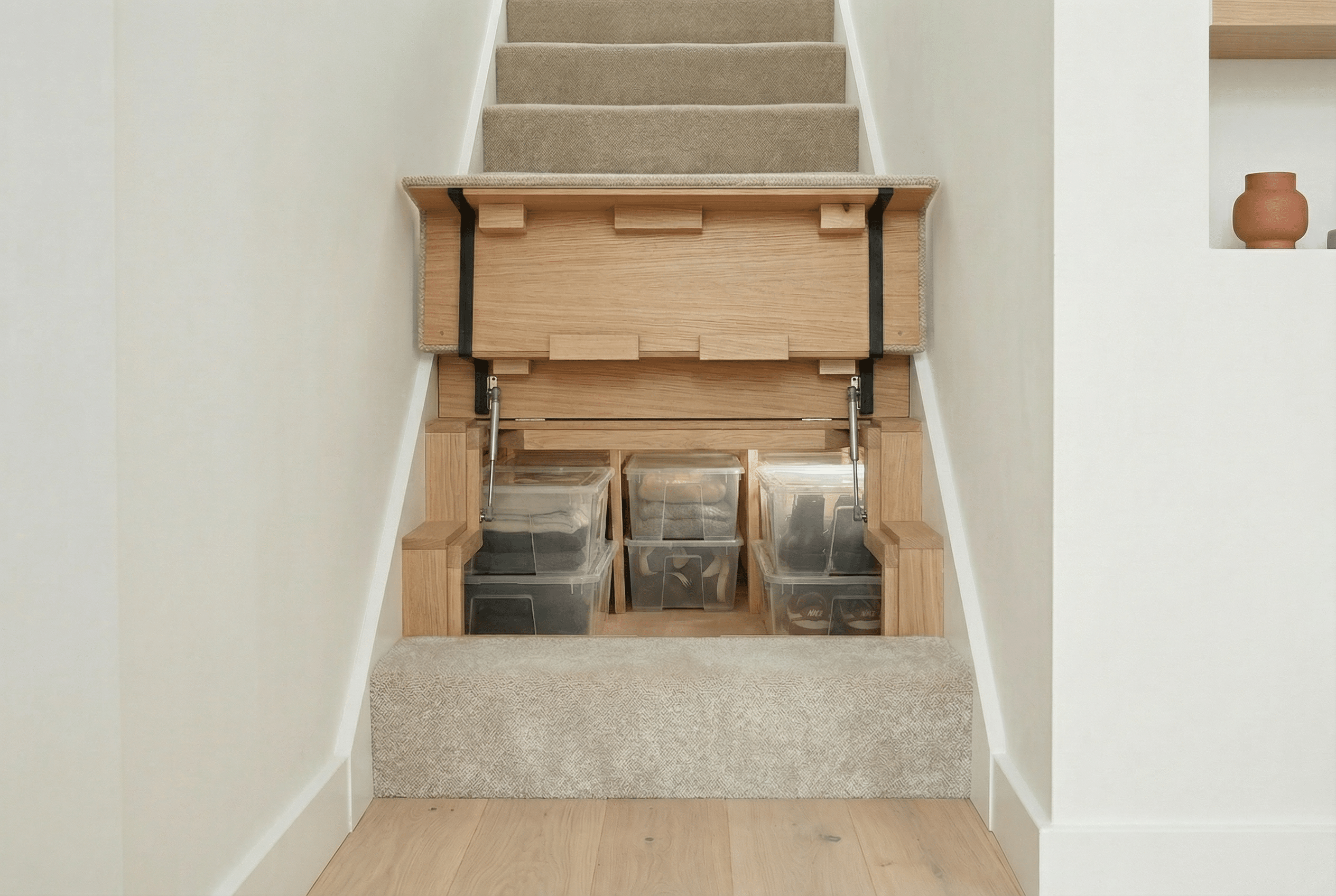 At The Storage Nook Co. we turn that empty void into practical, hidden storage, creating space exactly where you need it most.