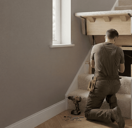 Transform dead space into useful storage. Our innovative lift-up stair nook storage hides clutter without stealing hallway space. Professional installation with a 10-year guarantee.